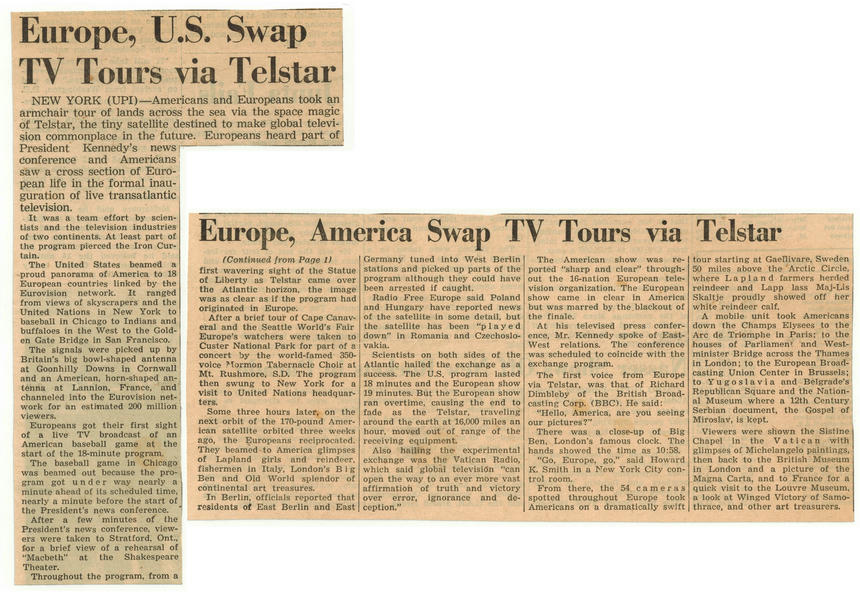 Scrapbook 3: Europe, U.S. Swap TV Tours via Telstar, Europe, America Swap TV Tours via Telstar